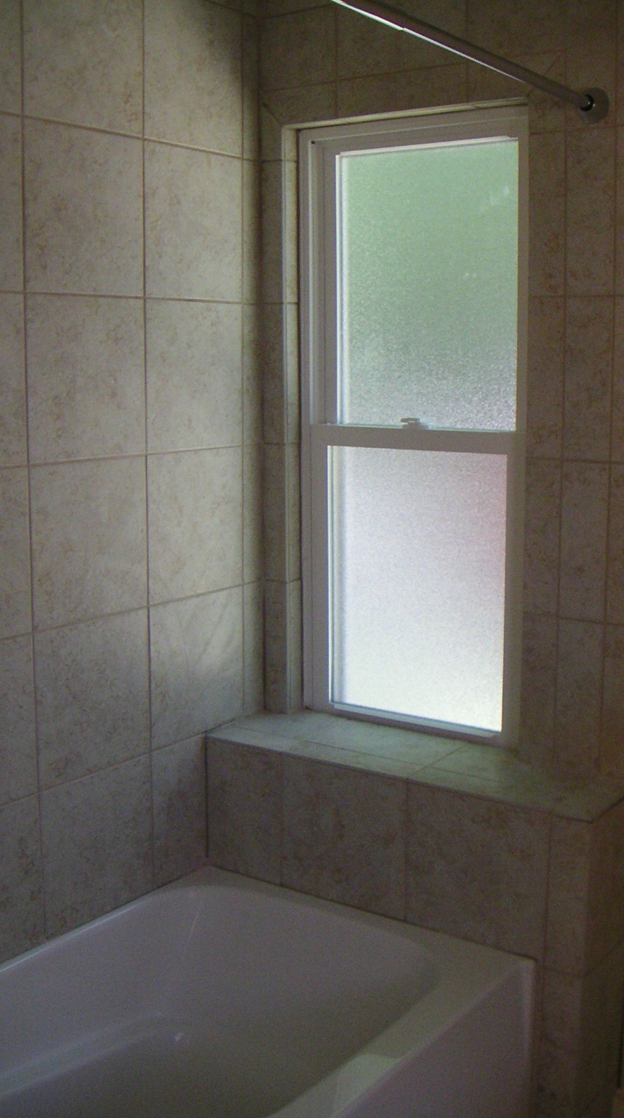 fresh new tiles and carried them around the new frosted window. Now there is natural light and privacy in the